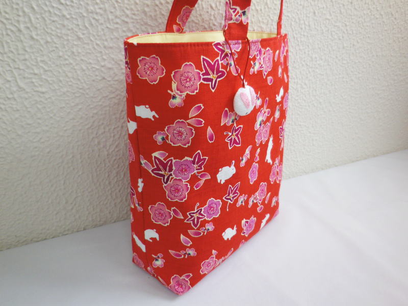 ■サイズ:高さ約23.5cm(手持ち含約35cm)・ 横約19〜26.5cm・マチ約7cm ■素材:表&裏地綿100%・日本製 ※写真の柄と同じ生地で作ったものをお送りしております。